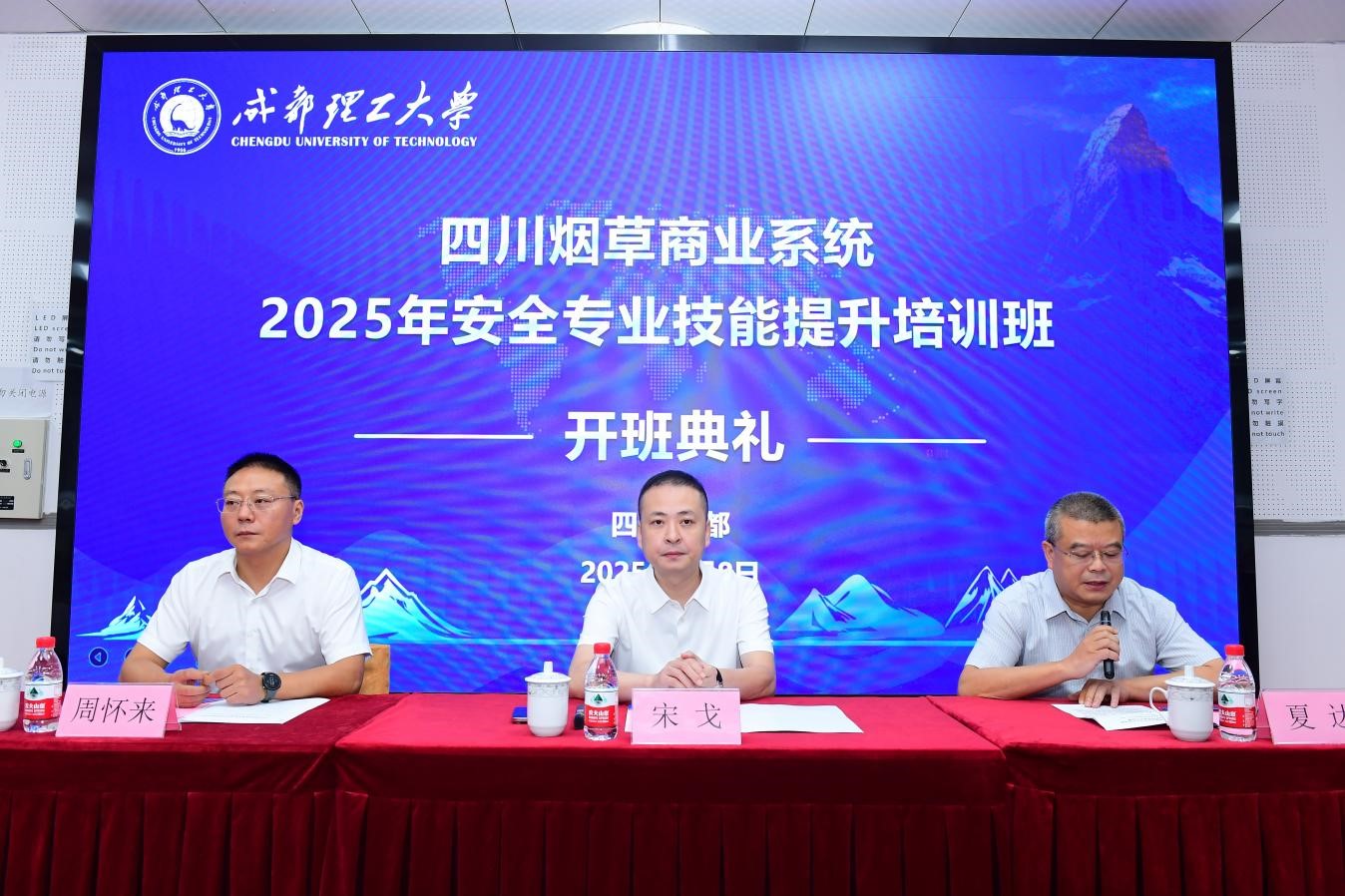 2025年9月8日,四川烟草商业系统2025年安全专业技能提升培训班(第二期)在我校正式开班。本期培训延续 “聚焦注册安全工程师能力提升、贴合烟草行业需求” 的核心定位,为四川烟草商业系统再输送一批高素质安全管理专业人才。成都理工大学继续教育学院党总支书记夏达,党总支副书记、院长周怀来,四川省烟草专卖局(公司)安全管理处负责人宋戈以及第二期全体参训学员150余人出席了本次开班典礼。