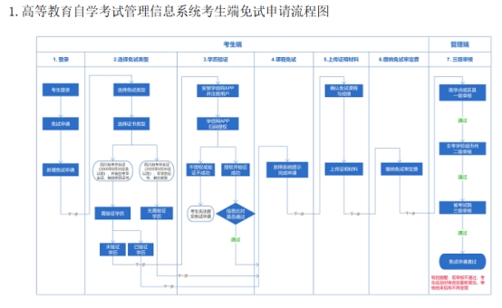 考生在规定的时间内登录高等教育自学考试管理信息系统(以下简称信息系统)考生端(网址https://zk.sceea.cn),按照系统提示提交免试申请并缴纳审定费,申请流程图见附件1。