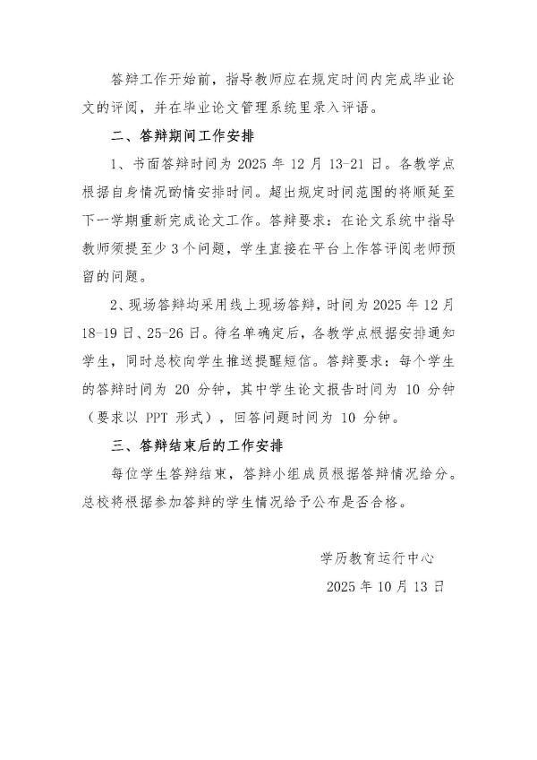 电子科技大学继教学历〔2025〕32号-关于2025年秋季学期组织毕业设计(论文)答辩的通知