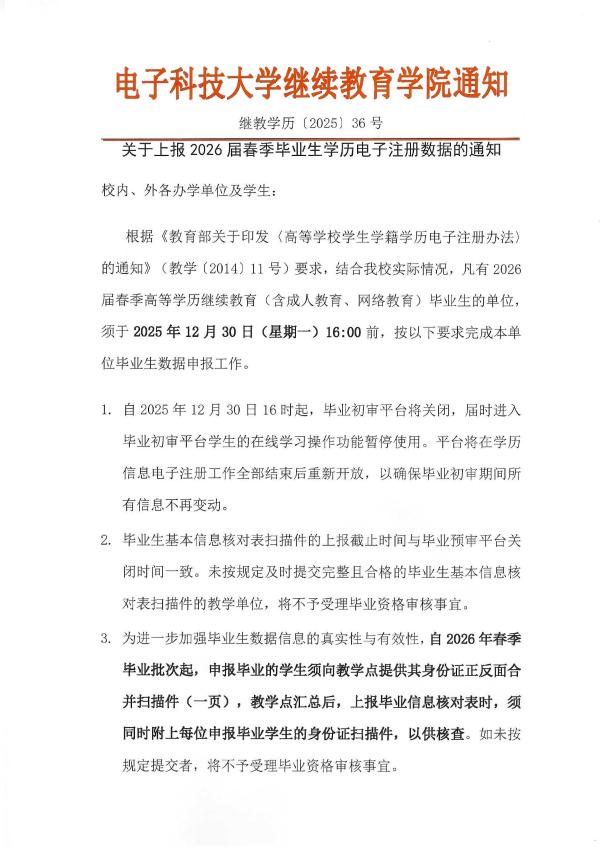 电子科技大学继教学历202536--关于上报2026届春季学历注册的通知