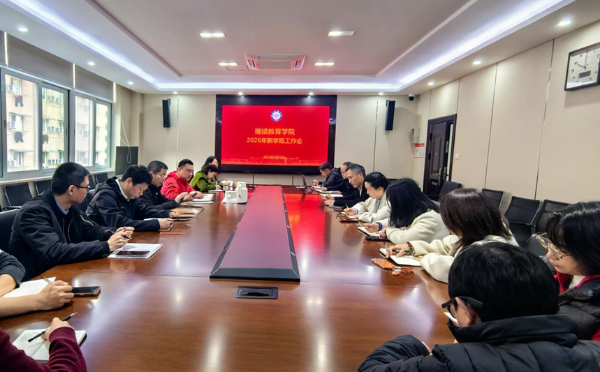 2月26日,继续教育学院召开“聚焦主责开创新局 锚定目标再续华章”2026年工作布置会,深入学习贯彻学校决策部署,全面部署年度重点任务,扎实推进“十五五”规划开局起步。学院领导班子成员、各科室负责人参加会议,会议由学院党委书记王勋主持。