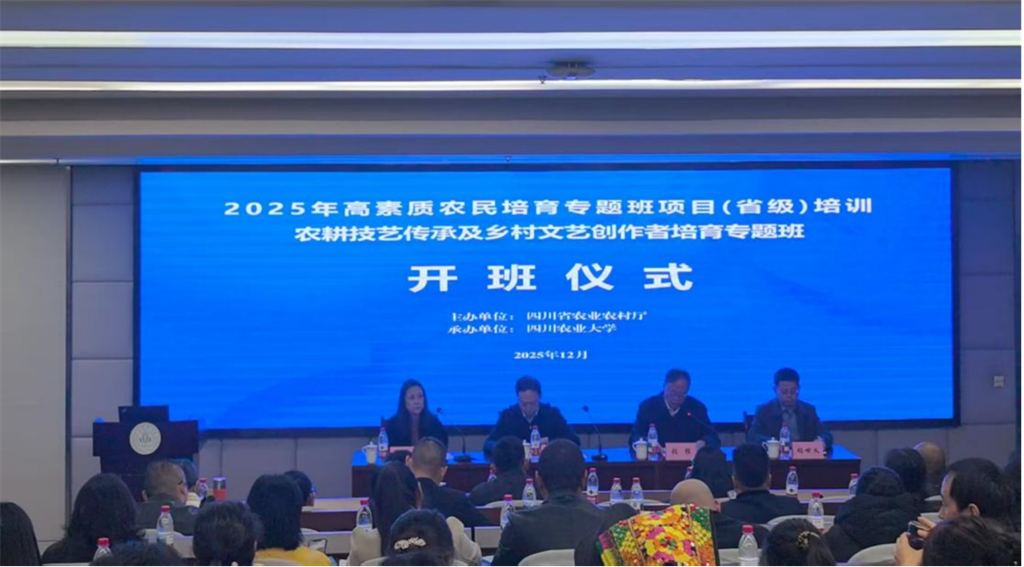 2025年12月10日,由四川省农业农村厅指导、四川农业大学承办的2025年高素质农民“农耕技艺传承及乡村文艺创作者培育”省级专题班圆满结束。本次培训自12月1日正式启动,历时10天,来自全省各地的89名学员完成了系统学习与实践。