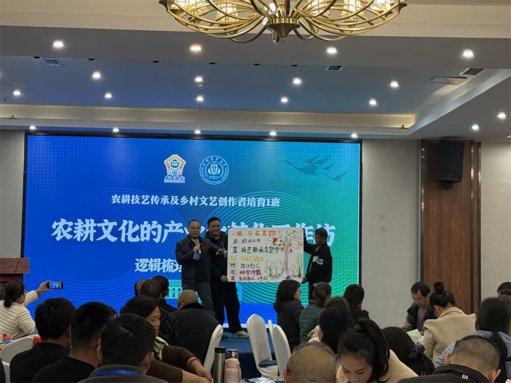 培训围绕“乡村文艺创作者、文化传播者、农文旅融合带头人”三大目标,构建了政策理论、专业技能与实践实训相结合的课程体系。学员们不仅学习了习近平新时代中国特色社会主义思想、数字乡村治理等政策理论,更通过“非遗遇上AI”“乡村文创设计与数字图形生成”“乡村文艺创作与数字化传播”等前沿课程,掌握了传统技艺与现代科技融合的新路径。