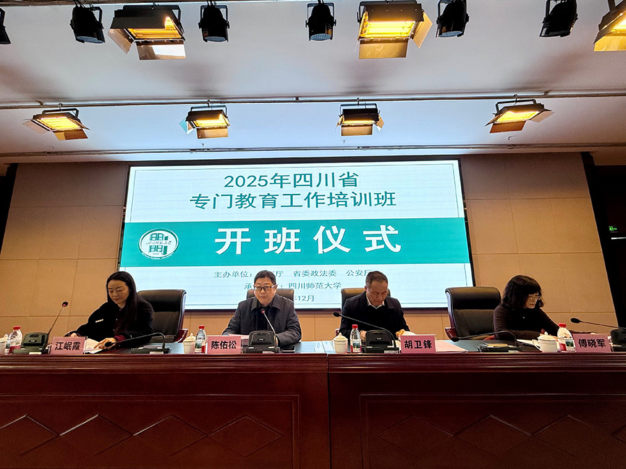 12月11日上午,由四川省教育厅、省委政法委、省公安厅主办、四川师范大学承办的2025年四川省专门教育工作培训班在四川师范大学狮子山校区明德楼4楼多功能厅正式开班。省教育厅一级巡视员胡卫锋、省委政法委二级巡视员傅晓军、四川师范大学副校长陈佑松出席开班仪式,开班仪式由省教育厅基教处江岷霞副处长主持。