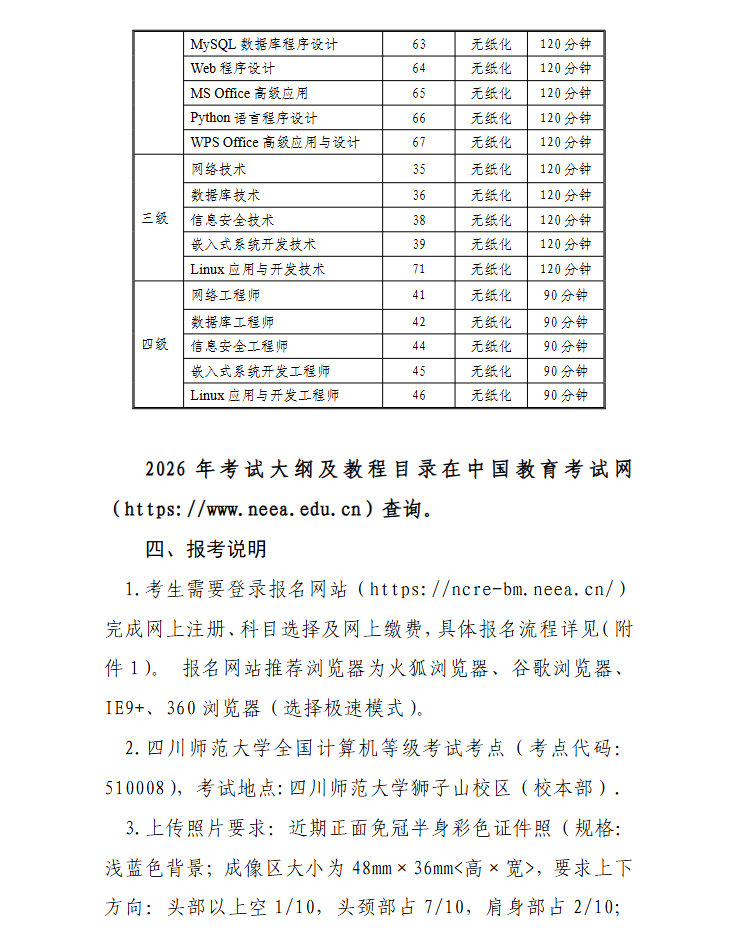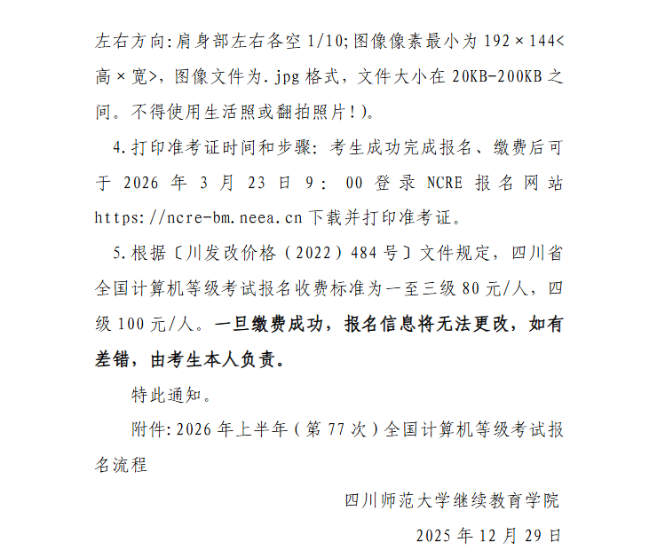 四川师范大学关于2026年上半年(第77次)全国计算机等级考试报名的通知