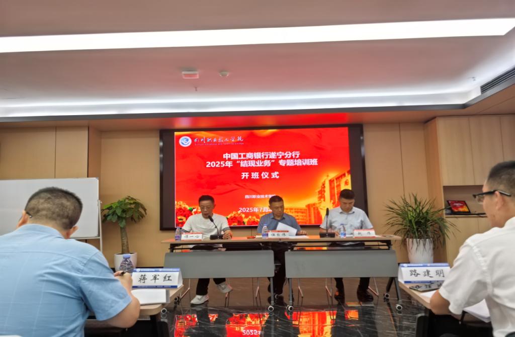 7月25日上午,中国工商银行遂宁分行“结现业务”专题培训开班仪式在四川职业技术学院翰林酒店学府厅会议室举行。分行副行长伍自伟,四川职业技术学院继续教育学院相关负责人出席仪式。