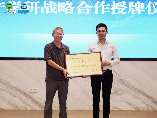活动现场,西华大学为四川熊猫研选文旅科技有限公司授予“产教融合校企合作单位”牌匾,标志着双方合作进入新阶段。四川熊猫研选创始人杨林现场发布西华大学联合开发的研学项目课程体系,涵盖科技、非遗、信息技术等多领域,旨在通过实践教学激发青少年科学兴趣。
