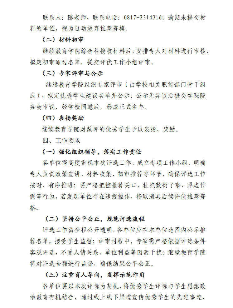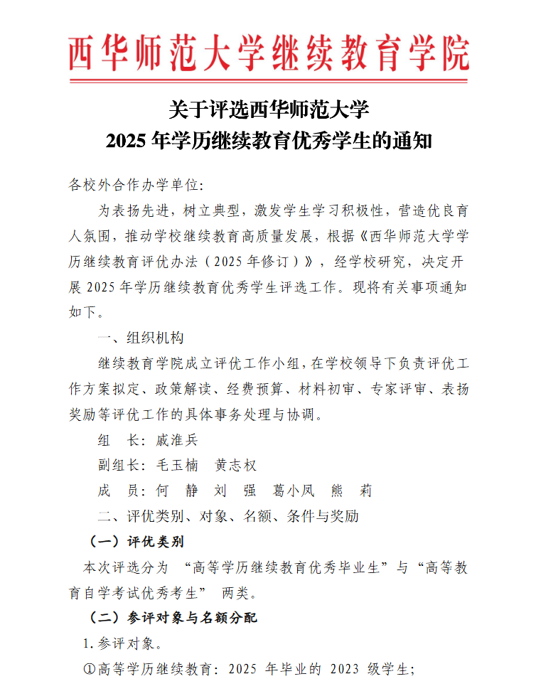 关于评选西华师范大学2025年学历继续教育优秀学生的通知