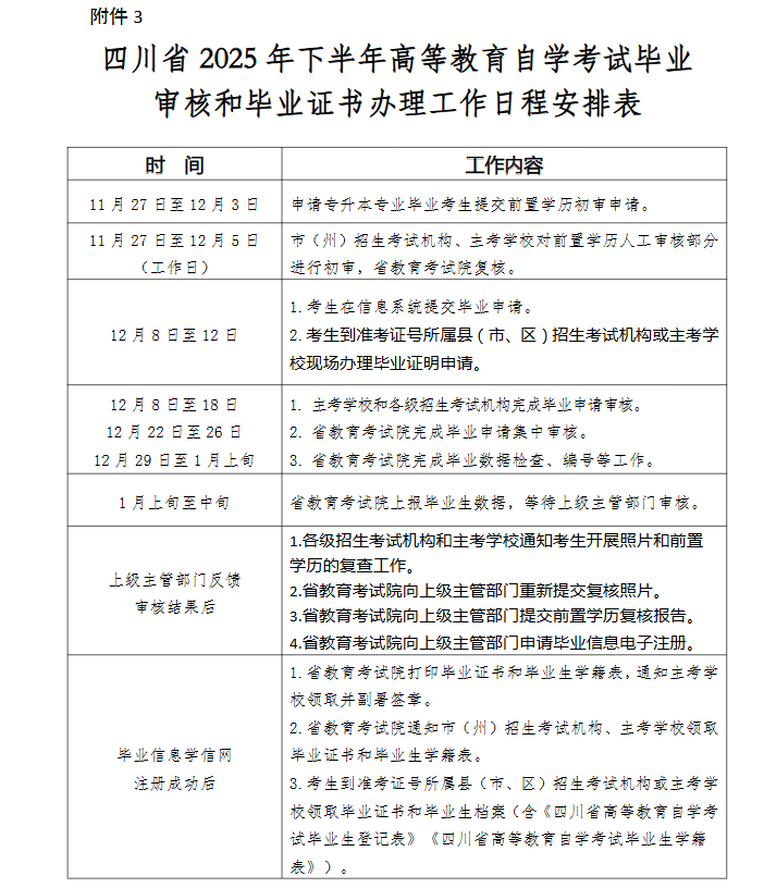 四川省2025年下半年高等教育自学考试毕业申请工作即将开展,根据川教考院函(2025)20号文件要求,本次业务办理流程和模式发生较大变化,各助学点及考生应高度重视并严格按照要求办理相关业务。现将我校高等教育自学考试应用型专业2025年下半年(25. 2次)毕业申请相关事项通知如下:
