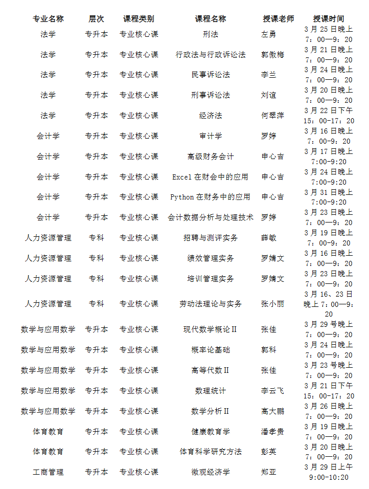 2025级学生2026年3月部分课程直播安排如下: