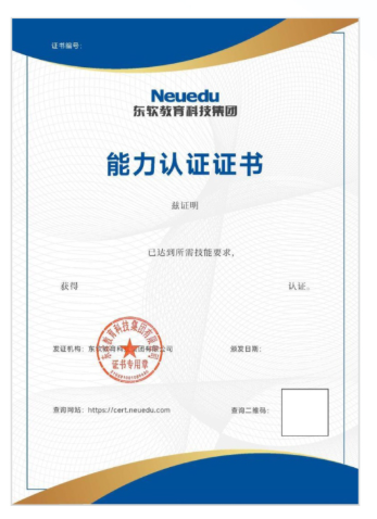 证书考试由东软教育科技集团有限公司负责,一般一年组织两次,考试方式为机考,单科总分100分,考试时间为90分钟/科。