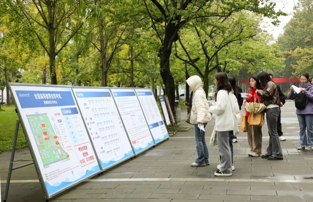 学校通过官网、官微、短信等渠道及时发布考试时间、地点、注意事项等重要信息,提醒考生做好考前准备。在考场外设置了指引标识和考场分布图,并为考生提供路线指引和咨询服务,引导考生快速找到考场位置。此外,学校还开放了休息区,用餐区等服务考生,充分体现了“以生为本”的服务理念。