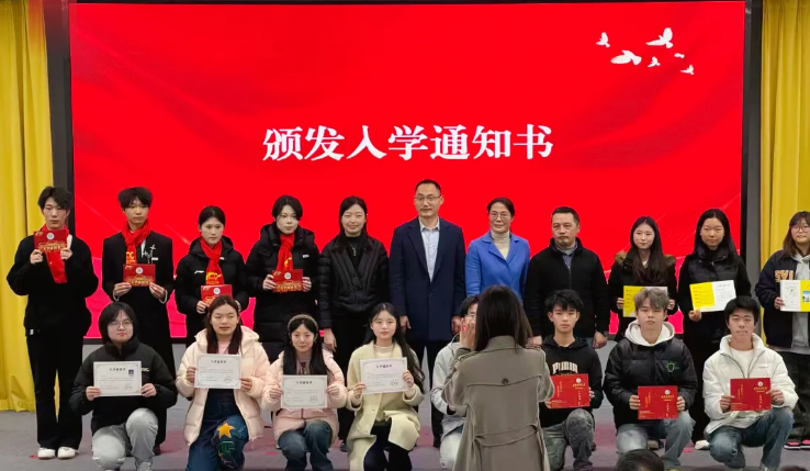 典礼上,校方特别安排了一个富有仪式感的环节——“启程·未来”颁发入学通知书仪式。与会老师向新生代表颁发了“入学通知书”,将关怀与期望具象化地传递到每位学子手中。