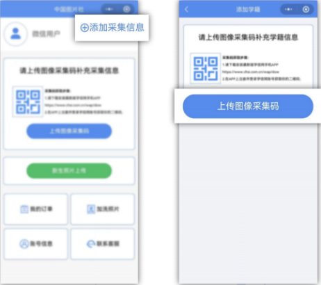 1.微信搜索“高校图像信息采集”或扫描二维码进入小程序主页。