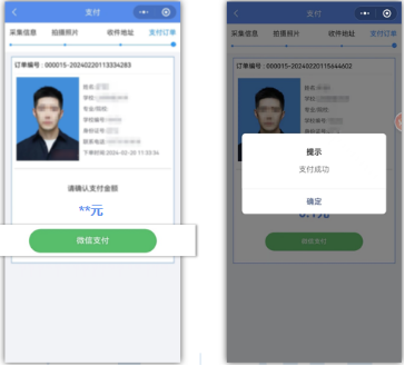 (5)支付并生成订单,点击下一步后会进入订单支付页面,请点击微信支付,支付成功会有弹窗提示。