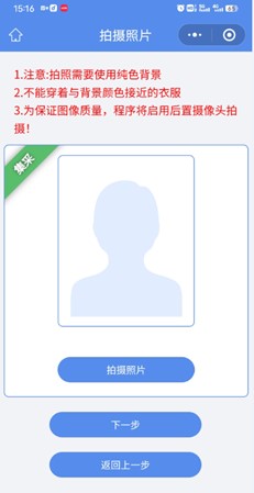 2.图像采集使用微信小程序“拍摄照片”(线上采集拍摄),用手机的后置摄像头进行拍摄,无需另行准备照片。