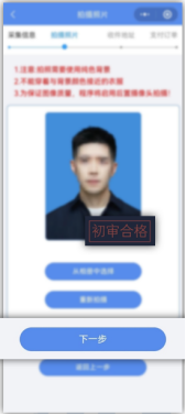 (7)人工审核。时间为1-5个工作日,请关注审核结果。如人工审核未通过,订单会显示被驳回,订单将显示审核失败的原因,可点击修改照片重新上传。
