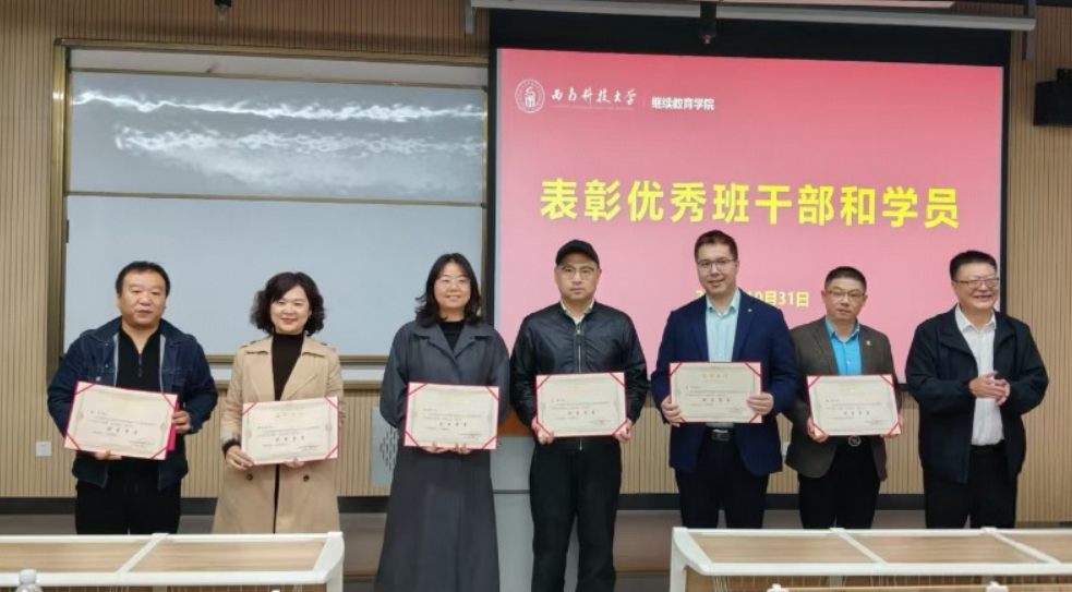 结业式上,对本次培训中表现优秀的学员进行了表彰,并为所有参训学员颁发了西南科技大学非学历教育结业证书。