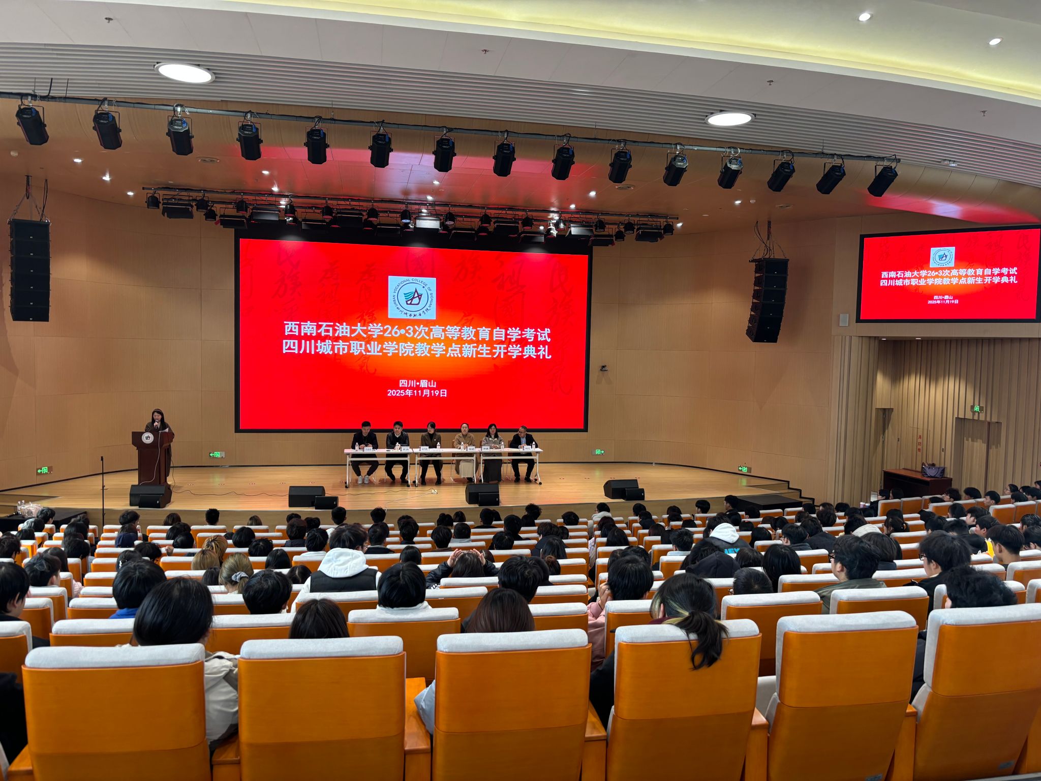 11月19日,我校自考教学点四川城市职业学院在眉山校区举办263次新生开学典礼暨入学教育。四川城市职业学院继续教育学院副院长兰青青、致远书院副院长陈剑、我校继续教育学院副院长阮雪梅、自考(招生)办主任林琳出席,全体263次自考新生参加典礼。