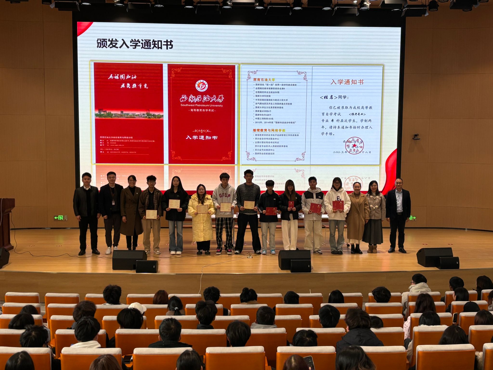 兰青青、阮雪梅在典礼上分别致辞,并为新生代表颁发入学通知书。