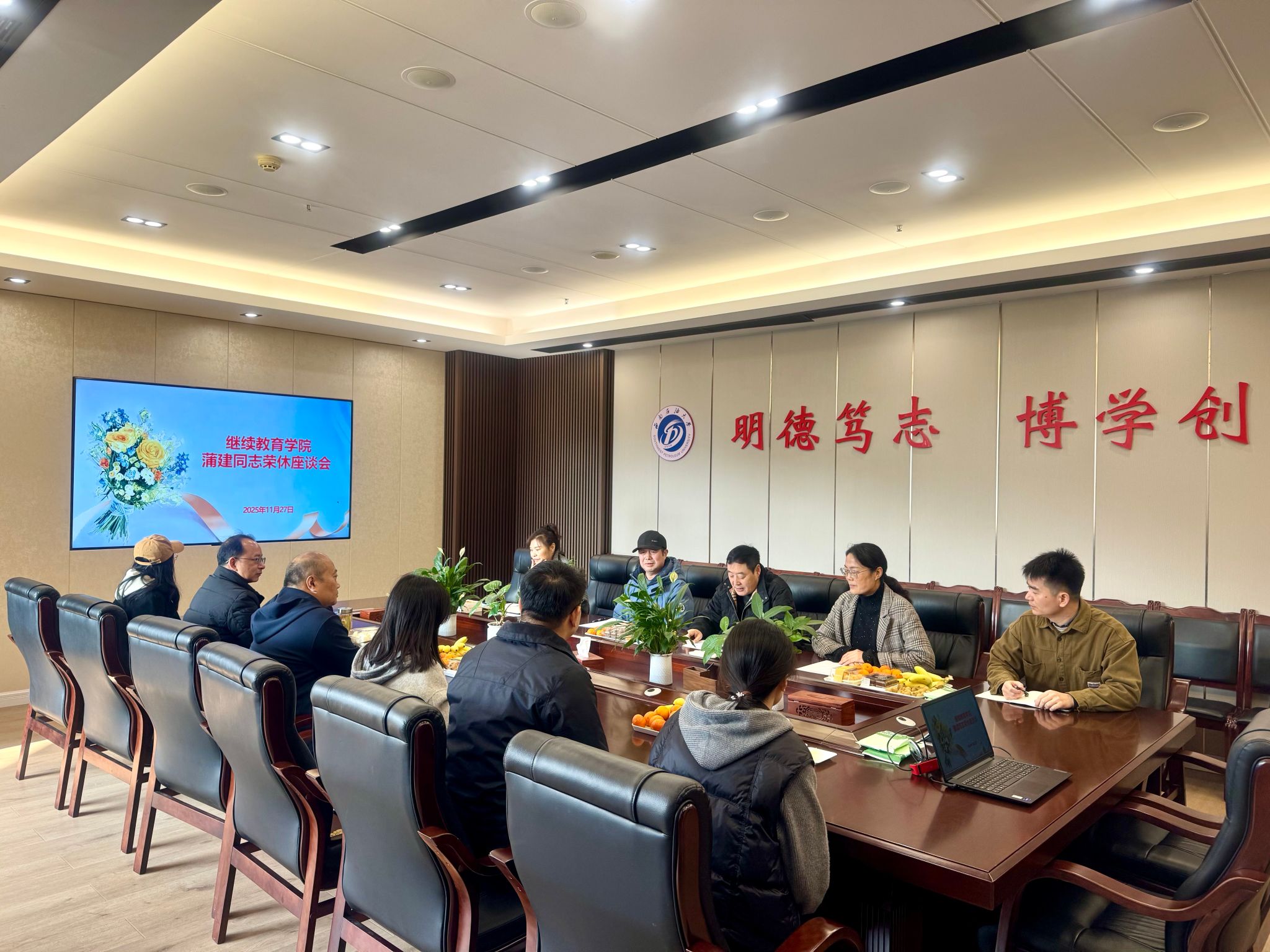 11月27日上午,学院在300会议室举行座谈会,欢送学院教职工蒲建同志光荣退休。学院全体院领导、各科室主任及教务办公室全体成员参加座谈,院长朱治富主持会议。