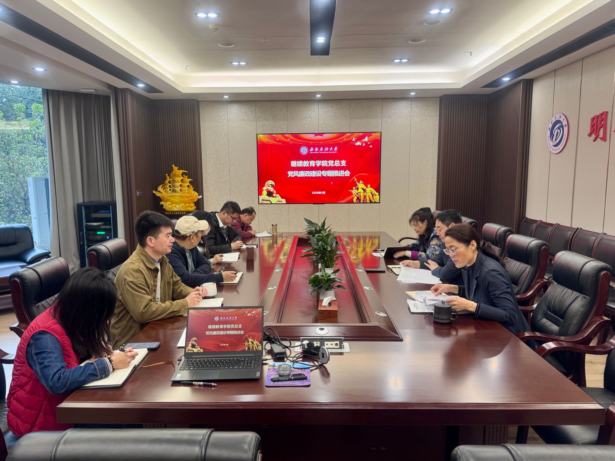 为深入学习贯彻习近平新时代中国特色社会主义思想,全面落实党风廉政建设、安全稳定及保密工作要求,进一步激发干部担当作为、筑牢安全廉政防线,3月12日上午,继续教育学院在科技园大厦300会议室召开党总支理论学习中心组(扩大)学习暨党风廉政建设与安全稳定保密工作专题会。学院院长朱治富主持会议,学院党总支理论学习中心组全体成员、各党支部书记、科室长参加会议。